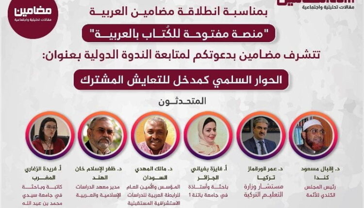 یہ سمینار عربی مضامین کا افتتاحی پروگرام ہے جو بین المذاہب مکالمہ کے اہم موضوع پر 14 اگست کو آنلائن منعقد ہونے جارہا ہے۔ اس میں کناڈا سے ڈاکٹر اقبال مسعود ندوی، سوڈان سے ڈاکٹر مالک مہدی، ترکی سے ڈاکٹر عمر قورقماز، ہندوستان سے ڈاکٹر ظفر الاسلام خام، جزائر سے پروفیسر فایزہ بغیانی اور مراکش سے پروفیسر فریدہ زغاری گفتگو کریں گے۔ شرکا کے گفتگو کے بعد سوال وجواب کا بھی موقع رہے گا۔ یہ عالمی سمینار مضامین کے اردو اور عربی فیس بک پیج پر 14 اگست بروز سنیچر رات کے 09:30 بجے لائیو دیکھا جاسکتا ہے۔ اگر کوئی اس سمینار میں سوال کرنے کے خواہش مند ہوں تو وہ درج ذیل نمبر ہر رابطہ کرسکتے ہیں۔