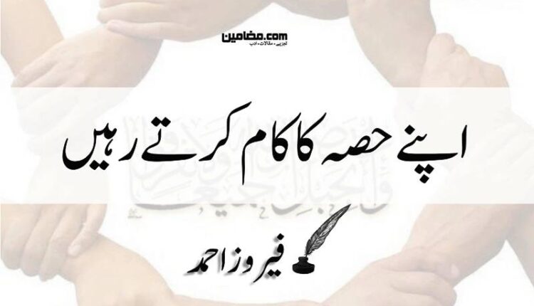 اس لیے جو جس میدان میں عمل پیرا ہیں اس کو اس میدان میں کام کرنے دیں اور جہاں ہماری سمجھ سے خالی میدان ہے ہم اس کو بھرنے کی کوشش کریں اور اپنی صلاحیت کو بروئے کار لاتے ہوئے اس فیلڈ میں عمل پیرا ہوجائیں، اس طرح ہماری مجموعی کوشش سے امت کو فائدہ ہوگا۔