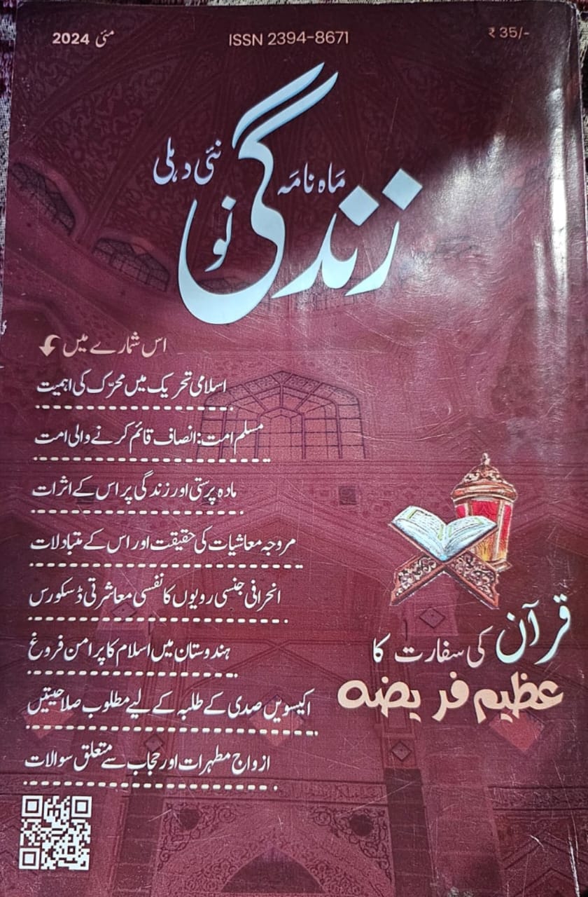 رسائل جہاں رائے عامہ ہموار کرنے میں اہم رول ادا کرتے ہیں؛ وہیں اگر وہ ایک فکر نظر کا حامل ہو تو یہ قاری کی ذہنی نشوونما میں بھی اہم رول ادا کرتا ہے۔ ‘زندگی نو’ گزشتہ پچاس سال سے زائد عرصے سے امت مسلمہ کی فکری و علمی رہنمائی کرتا آرہا ہے۔ "زندگی نو” مئی 2024 میں بہترین فکری اور علمی مضامین کو شامل کیا گیا ہے۔ رسالہ کے آغاز میں مفکر اسلام مولانا سید ابوالاعلٰی مودودی کے ایک اقتباس کا انتخاب "تفھیم القرآن” سے لیا گیا ہے۔ رسالہ کے مدیر ڈاکٹر محی الدین غازی گزشتہ کچھ عرصہ سے اجتماعیت پر بہترین مضامین لکھ رہے ہیں۔ اس شمارہ میں "اسلامی تحریک میں محرک کی اہمیت” پر اجتماعیت کے حوالے سے ایک فکری مضمون لکھا ہے۔ مضمون کے بارے میں ڈاکٹر صاحب لکھتے ہیں: