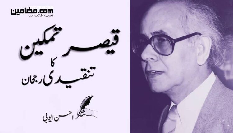 تخلیقی عمل کو اکتساب سے واسطہ نہیں ہوتا، یہ محض ایک فیضان ہوتا ہے۔ قیصر تمکین کا خیال ہے کہ بہت کم لوگ ایسے ہوتے ہیں جن کی تخلیقی صلاحیتیں شروع سے اخیر تک محو عمل اور فعال رہتی ہیں، ورنہ عام طور پر فنکار ایک خاص منزل پر پہنچ کر تھکے تھکے سے لگتے ہیں یا آمد کا سلسلہ منقطع ہو جاتا ہے۔ اس لیے ایسے مقام پر پہنچ کر خاموشی سے خود تنقیدی یا مطالعے اور فکر میں مشغول ہو جاتے ہیں۔ اگر کوئی فنکار نقد و نظر کے اچھے برے معیار سے ذرا بھی واقف ہو گا تو وہ جذبہ و فکر کے اظہار سے پہلے اور بعد تک کاٹ چھانٹ اور ترمیم و اضافہ ضرور کرتا رہے گا۔ تخلیق کار اور قارئین میں تنقیدی بصیرت کے اسی فقدان کی وجہ سے انھوں نے معرکہ آرا مضمون ’’ تنقید کی موت‘ ‘ لکھا جس میں ادبی تنقید کی صورت حال، ادبی اداروں پر جبہ سائی کرنے والے مفادپرست ادیب، مسند صدارت پر موجود حضرات کی اقربا پروری، نقائص سے مملو تحریروں پر نازاں ہو کر ضخیم نمبر اور مضامین شائع کرانے والے حریص اہل قلم پر طنز کیا گیا ہے۔ انھوں نے اس حوالے سے دو تین دلچسپ واقعات بھی قلم بند کیے ہیں جن سے ادبی تنقید اور نظریات و افکار کی ادھوری تفہیم اور مبہم تشریح کا ثبوت ملتا ہے۔ انھوں نے لکھا ہے کہ :